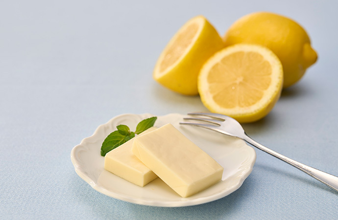 - ナチュラルチーズ(オーストラリア製造、ニュージーランド製造)、砂糖、ショートニング、乳たん白、でん粉、寒天加工品、レモン果汁、寒天、レモンパウダー、柚子抽出物/乳化剤、安定剤(増粘多糖類)、香料、pH調整剤、トレハロース、(一部に乳成分を含む)