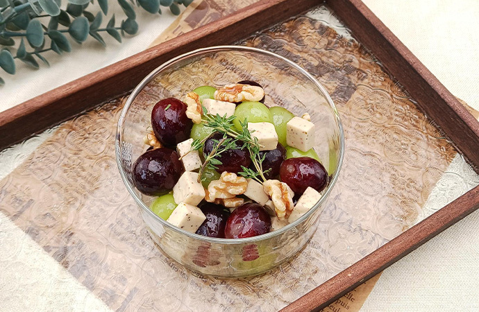 ぶどうの甘さとペッパーの辛み、くるみの食感がよく合います。