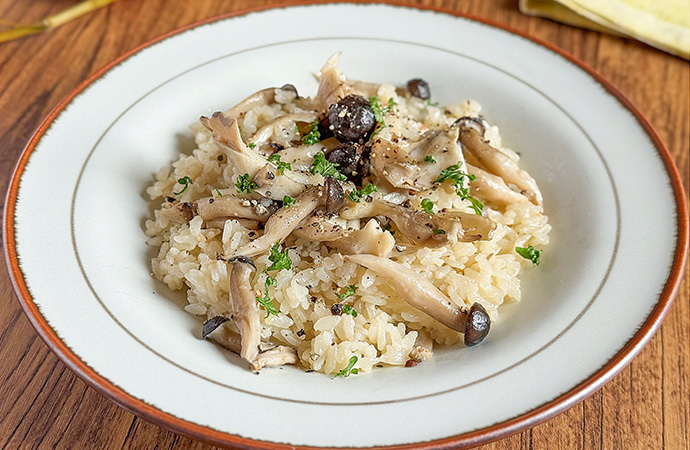 きのこのうま味が広がる贅沢な炊き込みご飯です。