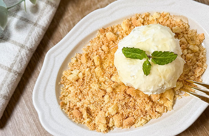 また、砕いたビスケットを敷くひと手間で、おしゃれなカフェ風に仕上がります♡