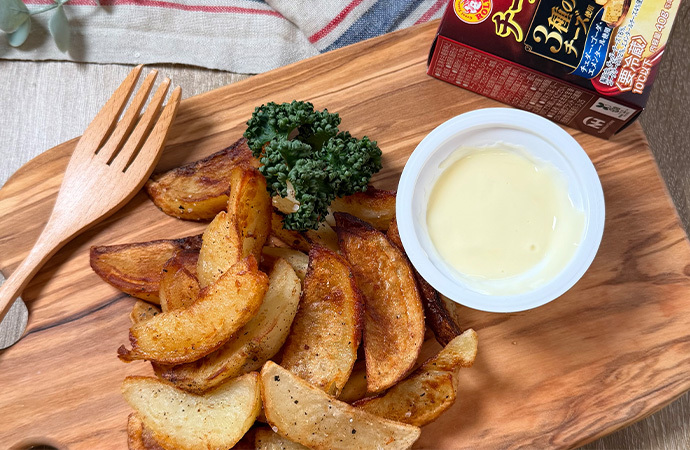 卵をゆでてベーコンを電子レンジで加熱したらあとは盛りつけるだけ!味つけも「ロルフ チーズフォンデュ」を使用するので失敗しらず!これだけで濃厚なコクと塩けが決まり、まるでお店のような本格的な味わいに◎