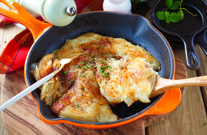 ロルフ チーズフォンデュ 160gを袋の表示通り加熱し2にかける。